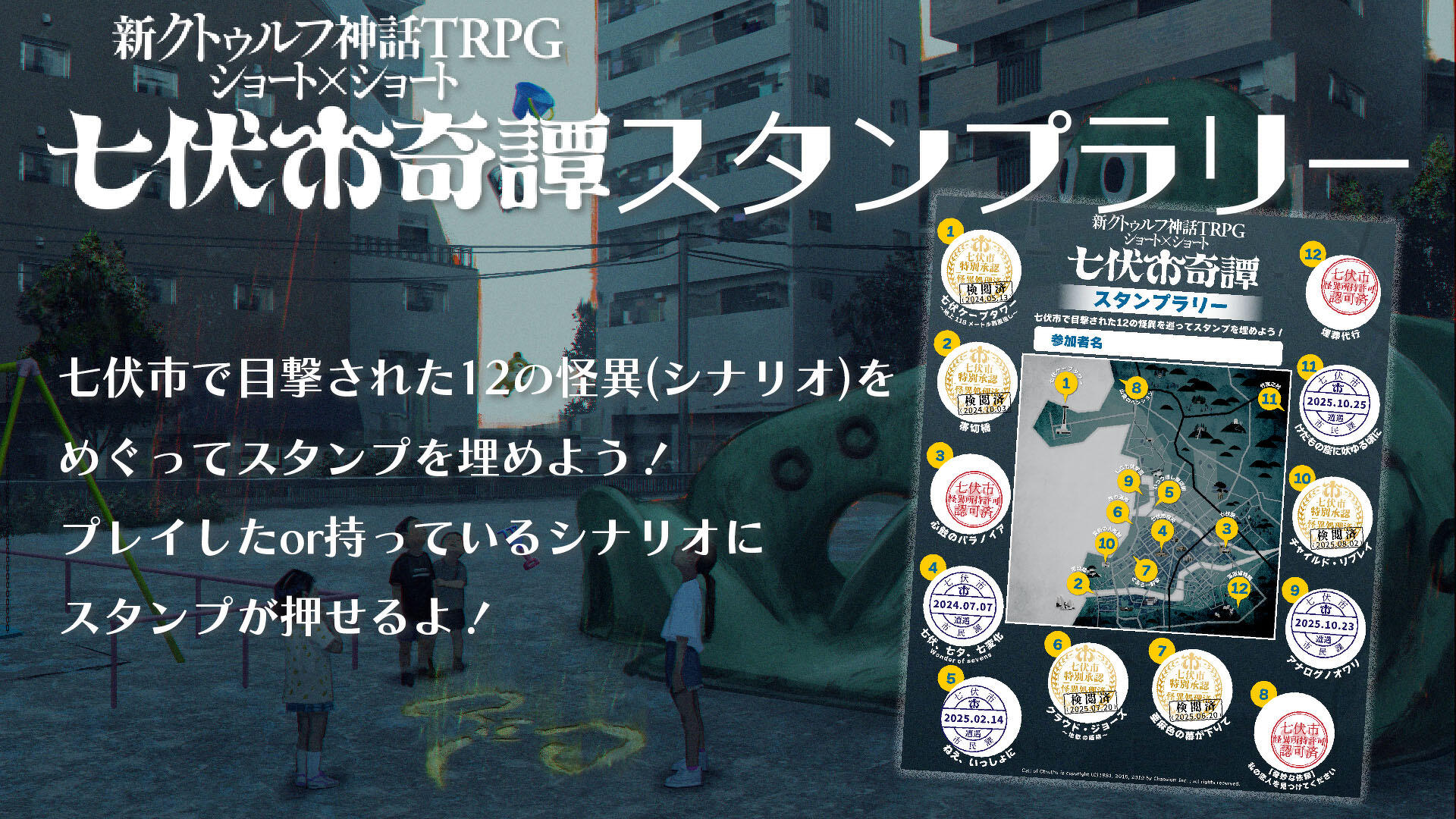 七伏市で目撃された12の怪異(シナリオ)をめぐってスタンプを埋めよう!