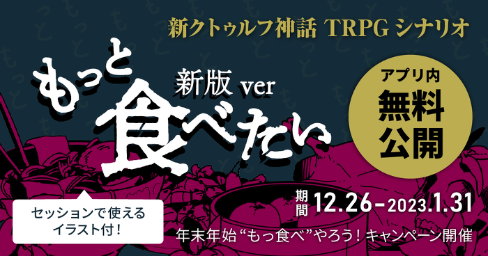 また、皆さまに『もっと食べたい 新版ver』をプレイしていただきたく、プレゼントが当たるキャンペーンも開催いたします。ぜひこの機会にアプリを使ってシナリオを回してみてください。