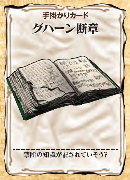 ブレインの心配をよそに、パワーの〈格闘〉によって、引き出しはバラバラに破壊されました。中から出てきたのは『グハーン断章』という、英語の怪しげな本です。