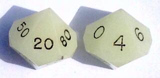 ダイス・ロールはD100(パーセント・ダイス)で行ないます。D100は2つの10面ダイスの組み合わせで、片方を10の位、片方を1の位とすることで、1から100の数字を出せます。出た数字が指定された能力値や技能値以下だったら、その行動は成功します。つまり、能力値や技能値はある事柄を成功させられる確率なのです。能力値や技能値を基準にして行なうダイス・ロールをまとめて「技能ロール」と呼びます。