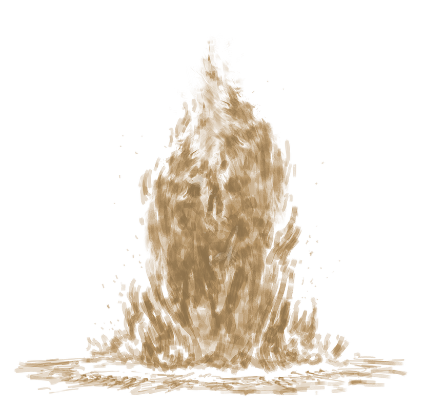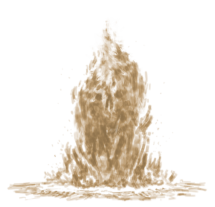 しかし、その姿は炎にしてはありえないほどに冷たく、不気味な冷気をまとっている。トゥールスチャの炎をくぐった物は魔力を帯びるとされる。では、燃やされた者はどうなるのか? 想像のとおり、おぞましい結果が待っている。焼かれた者はかの邪神の意思なき眷属となり、空の眼窩が燃え尽きるまで操られるのだ。