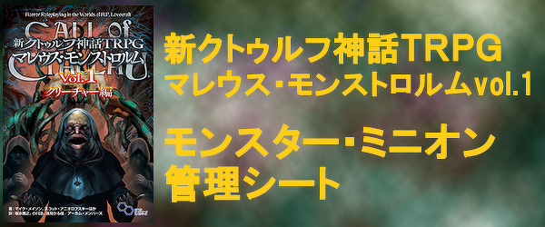 新クトゥルフ神話TRPGマレウス・モンストロルムVol.1 モンスター・ミニオン管理シート