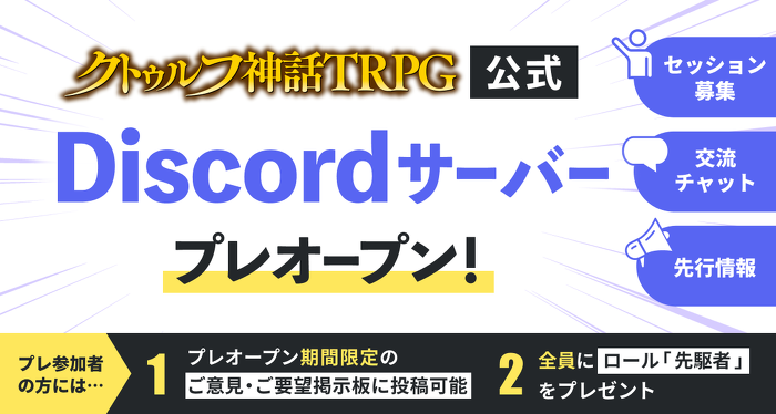 『クトゥルフ神話TRPG』の公式Discordサーバーができました!2023年11月1日よりプレオープンいたします!